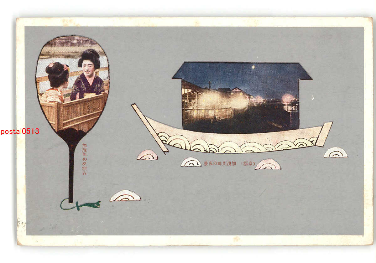 京都 加茂川畔の夜景 加茂川の夕涼み *傷み有り