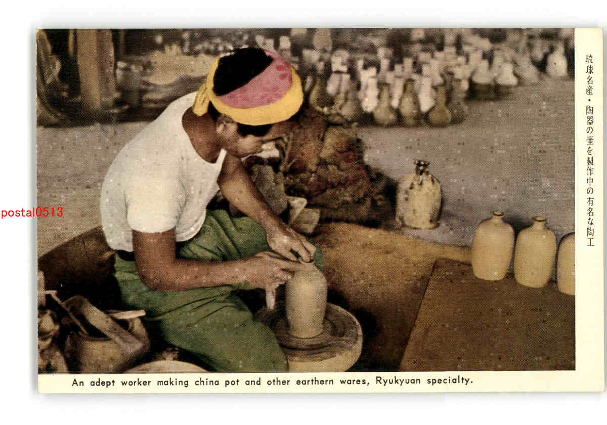 沖縄 琉球名産 陶器の壺を製作中の有名な陶工 *傷み有り