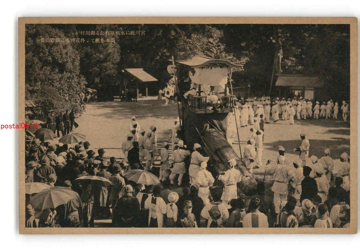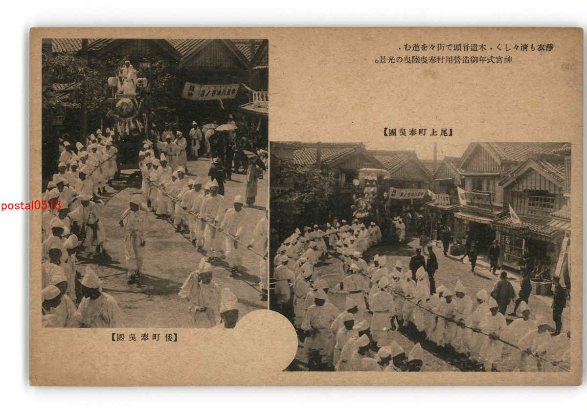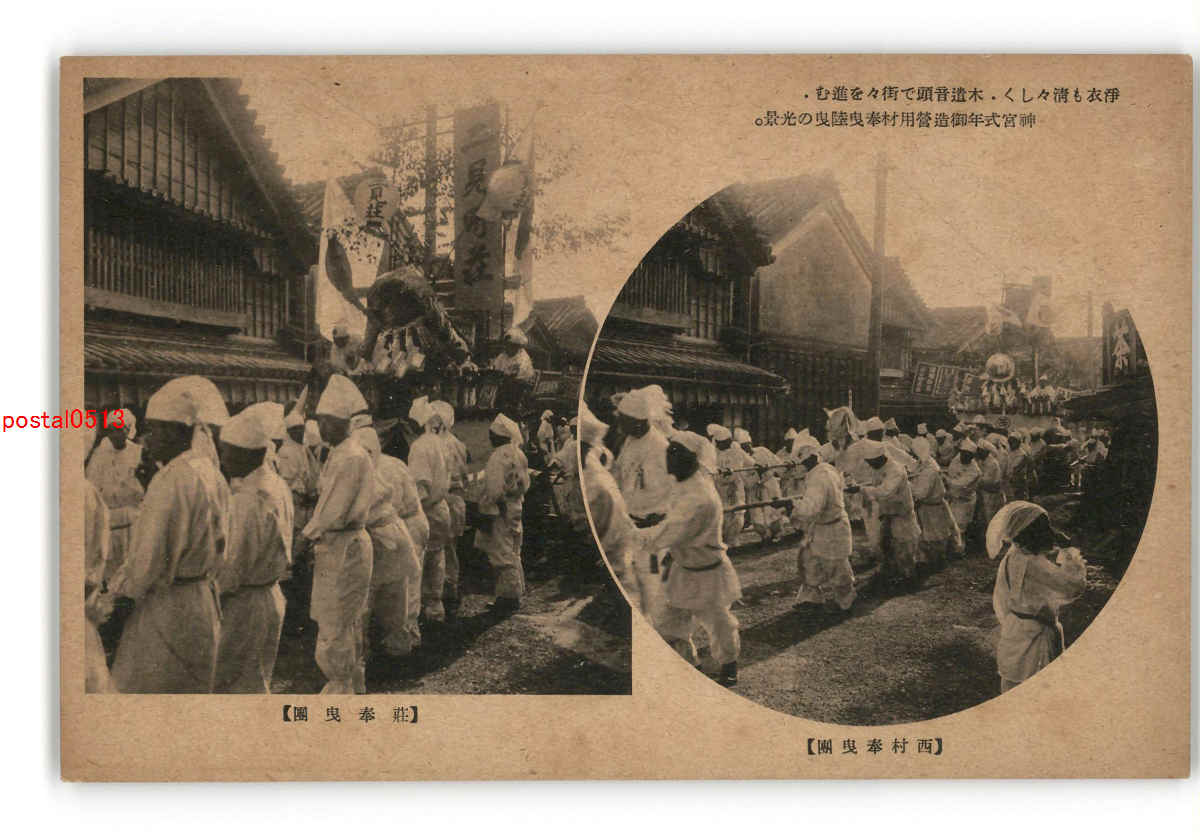 三重 宮川堤に水揚されたる御用材が街々を経て 外宮神苑に到着の景 *傷み有り