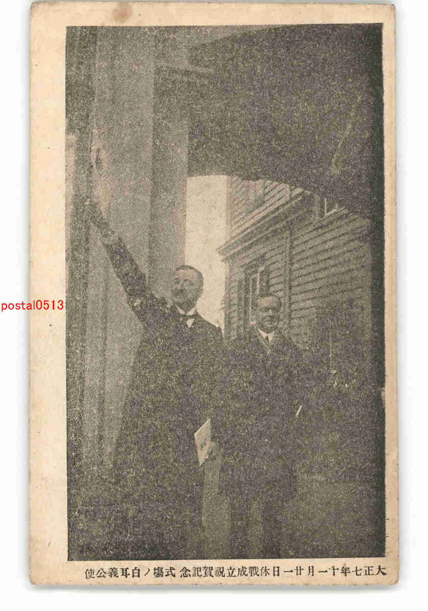 大正7年11月21日休戦成立祝賀記念式場の白耳義公使 *傷み有り