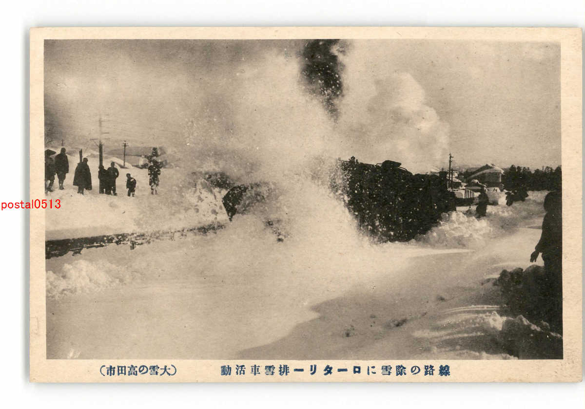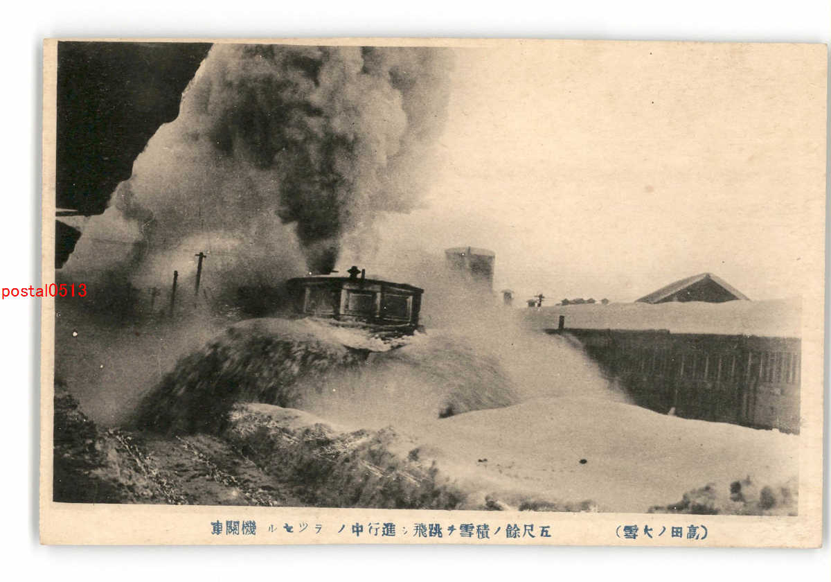 新潟 高田の大雪 五尺余の積雪を跳飛し進行中のラッセル機関車 *傷み有り