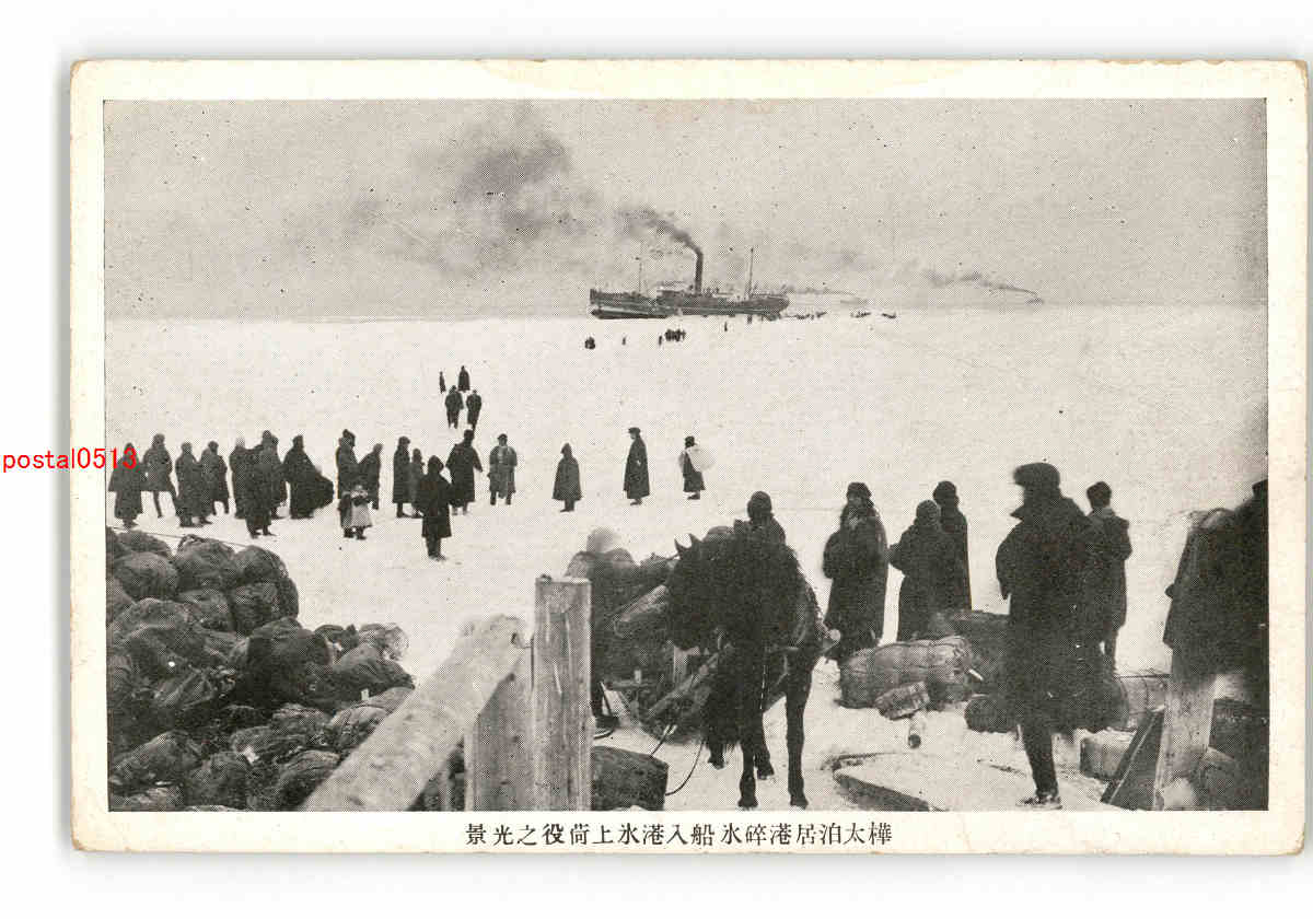 樺太 泊居港碎氷船入港氷上荷役の光景 *傷み有り