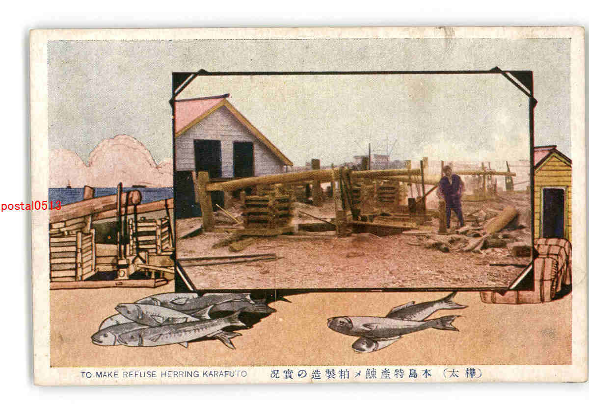 樺太 本島特産鰊め粕製造の実況 *傷み有り