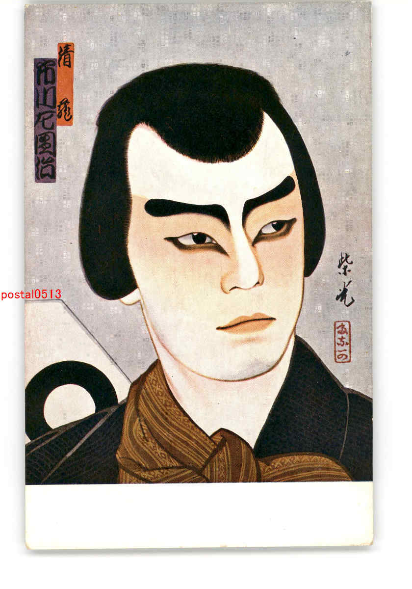 歌舞伎役者アート絵葉書 市川左團次 *傷み有り