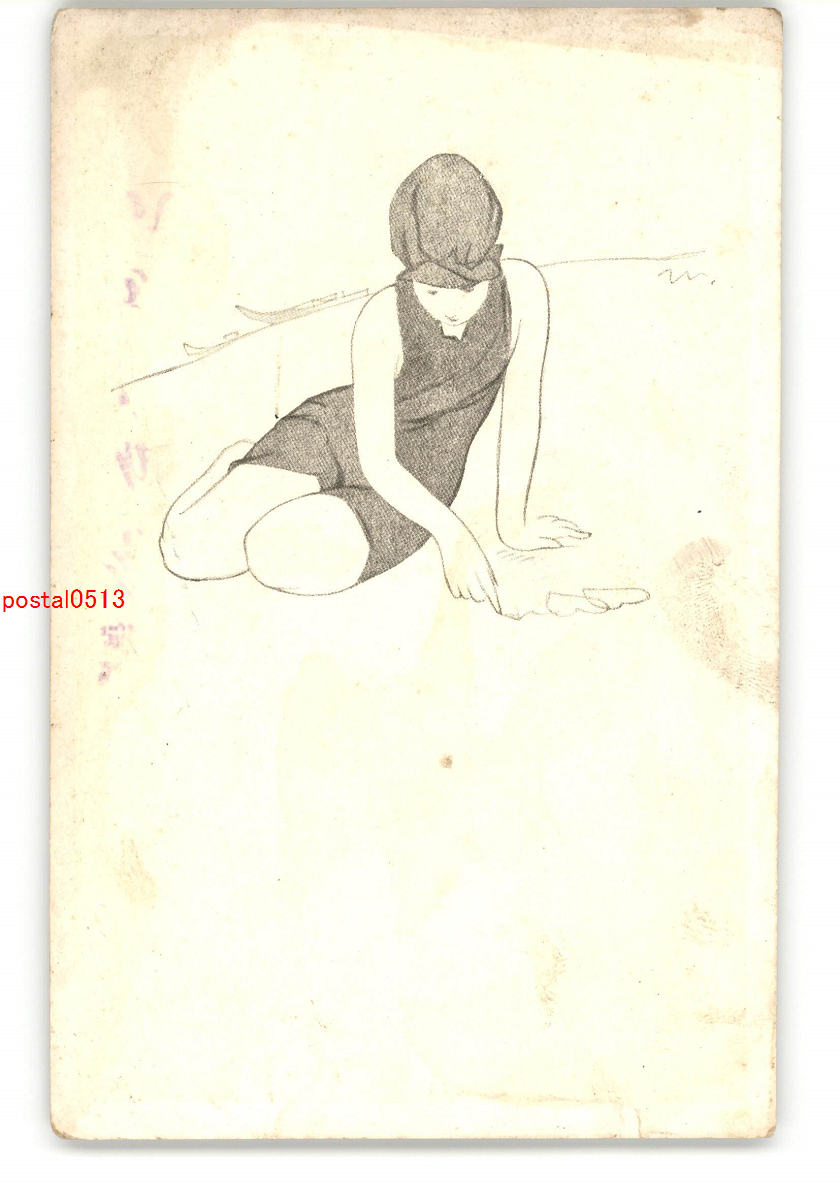 加藤まさを? アート絵葉書 浜辺の水着美人 *傷み有り