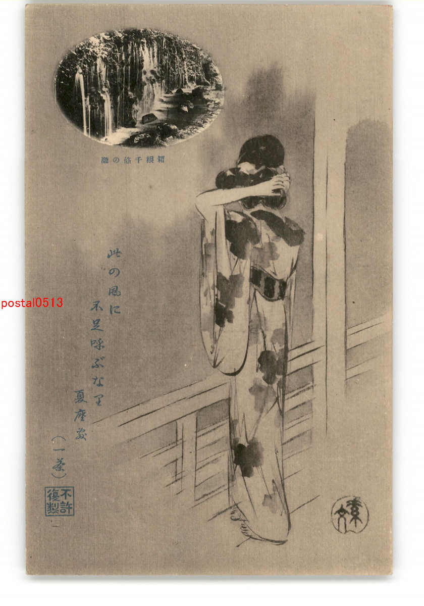 箱根 温泉美人 アート絵葉書 *傷み有り