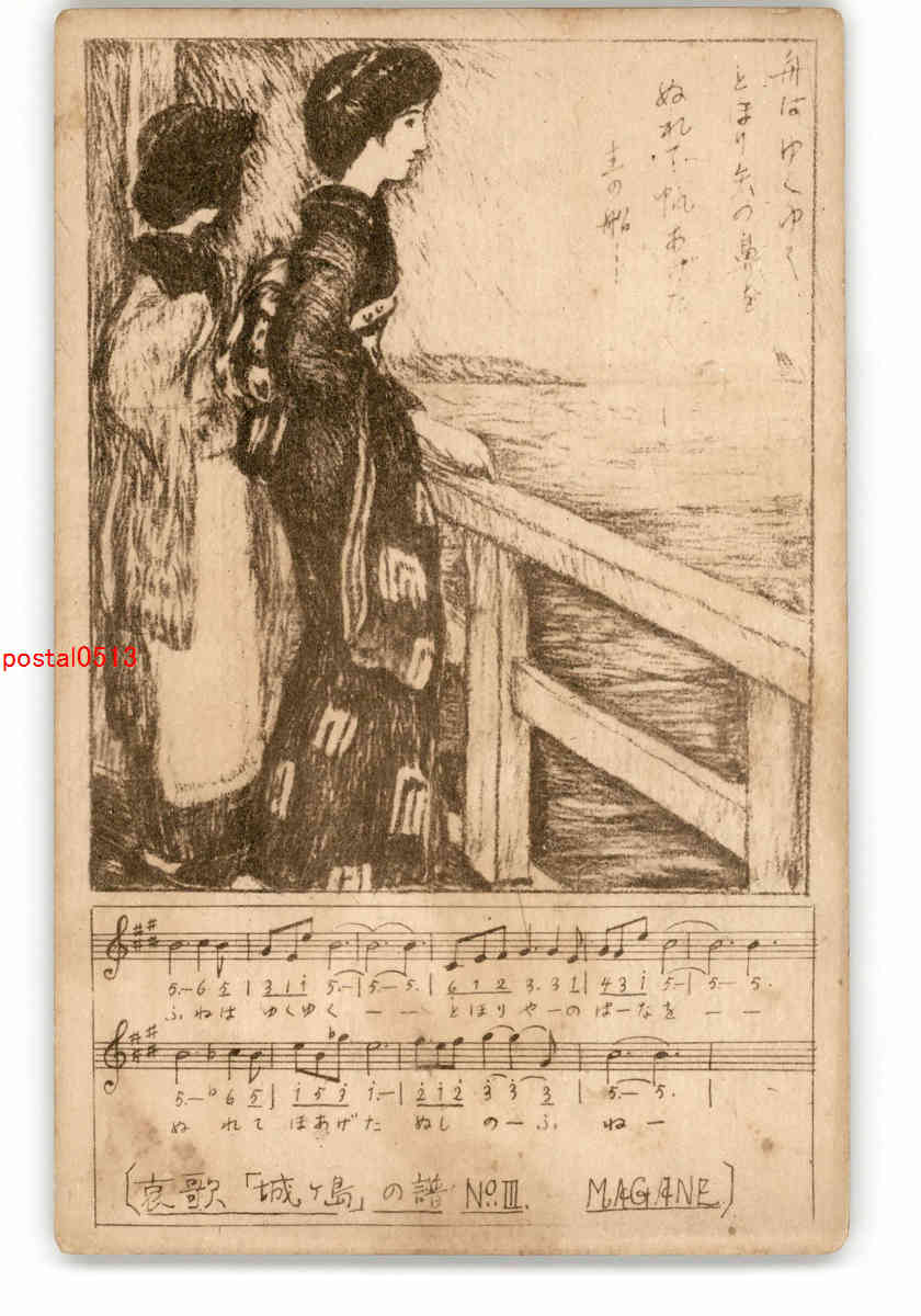 唄アート絵葉書 山田まがね 城ヶ島 *傷み有り