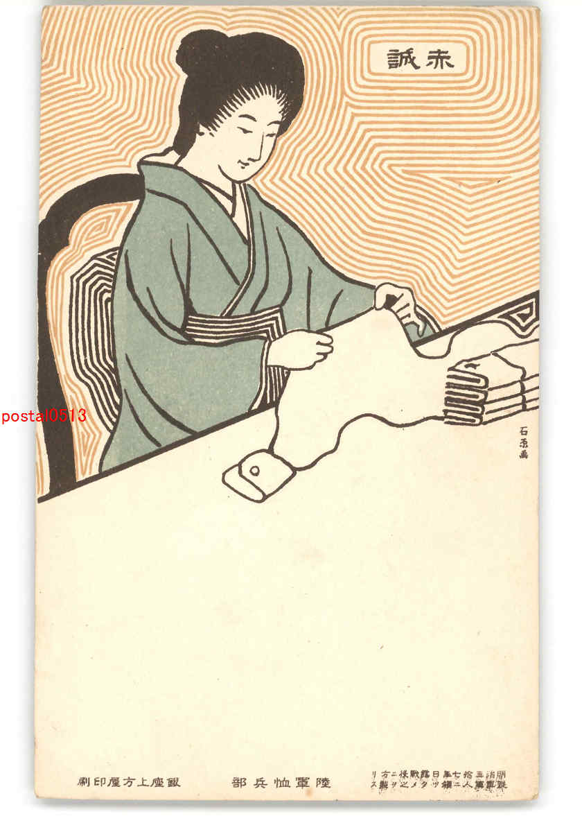 陸軍恤兵部アート絵葉書 包帯?をたたむ美人 *傷み有り