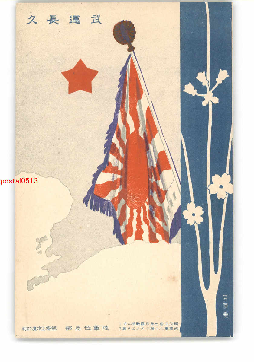 陸軍恤兵部アート絵葉書 軍旗 *傷み有り