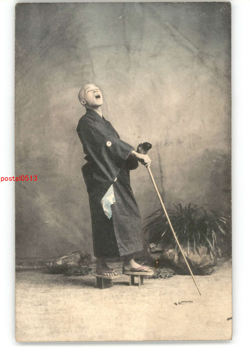 下駄を履いた盲人 手彩色 *傷み有り