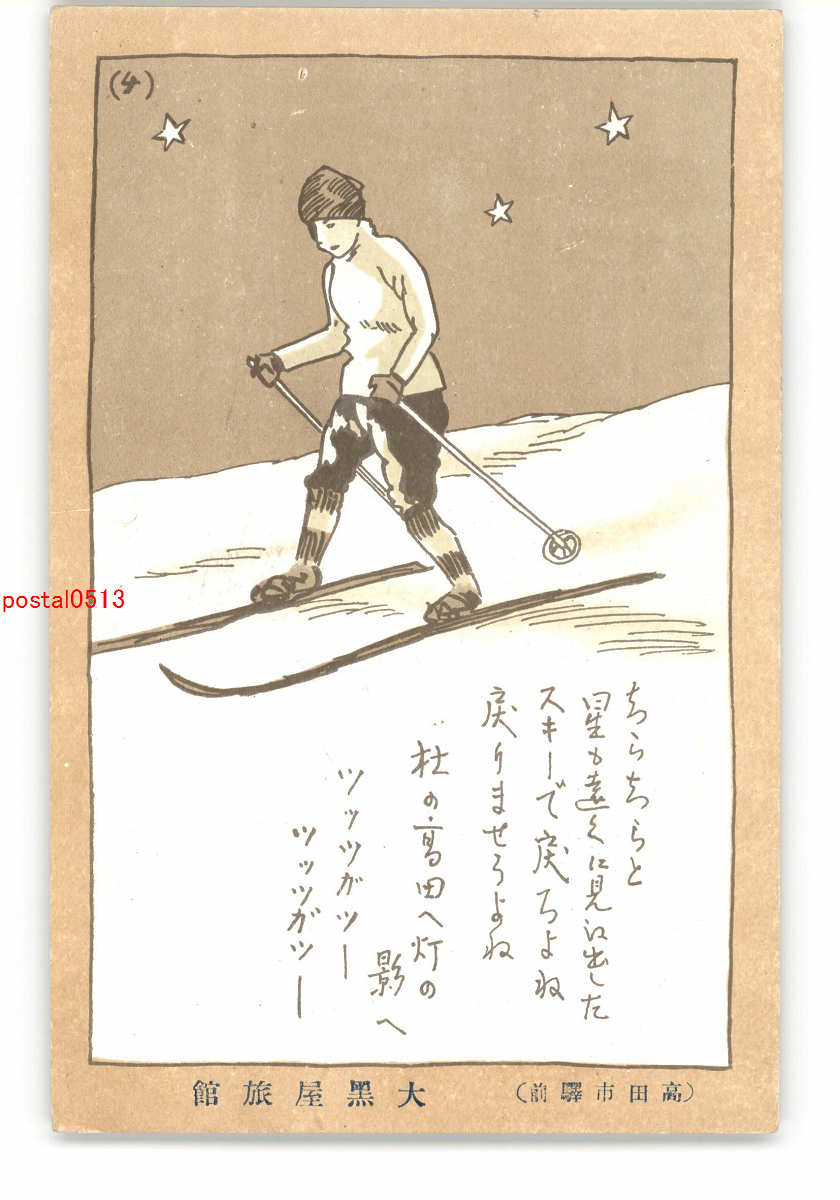 スキー民謡? アート絵葉書 *傷み有り