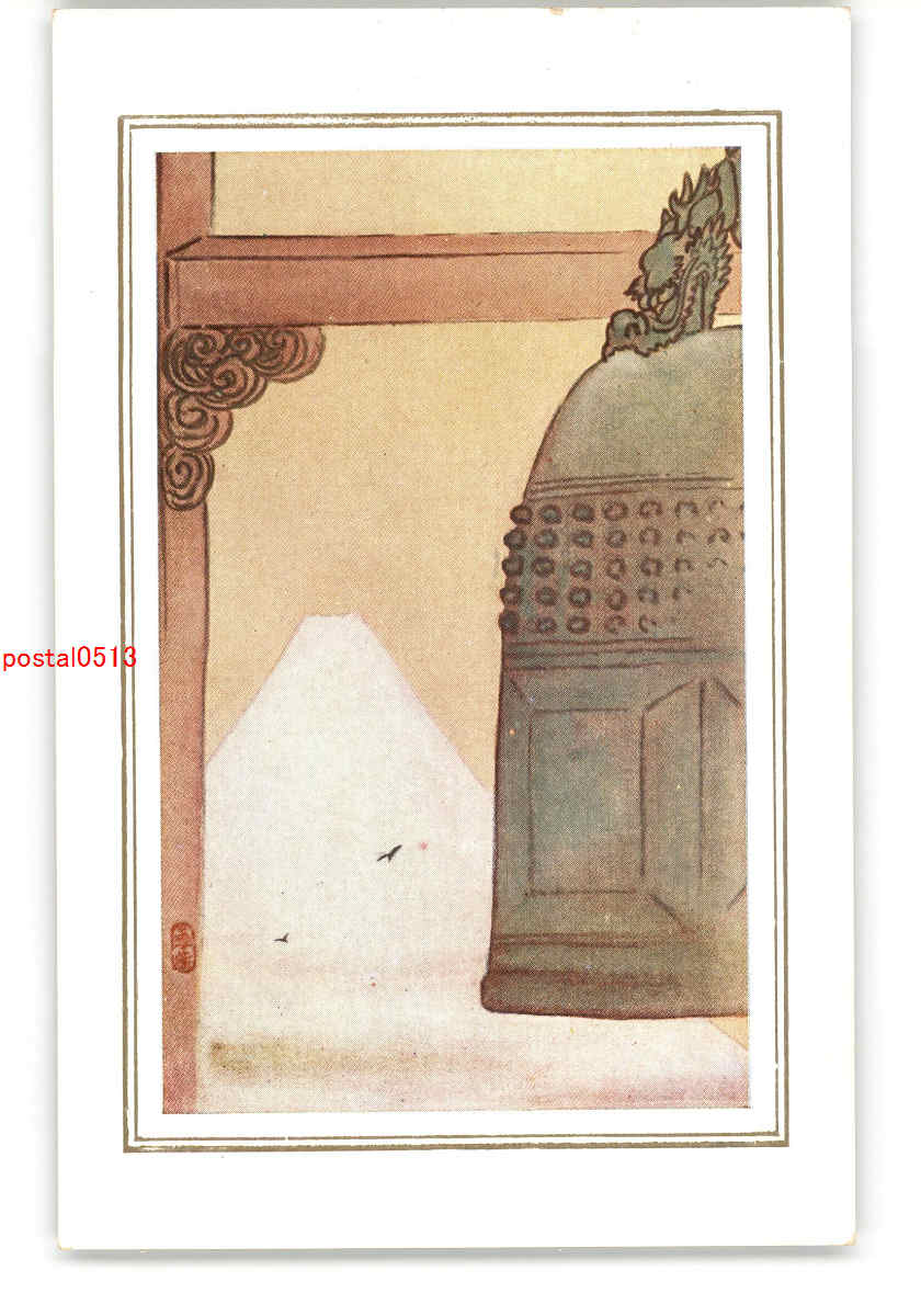 鐘と富士山 アート絵葉書 *傷み有り
