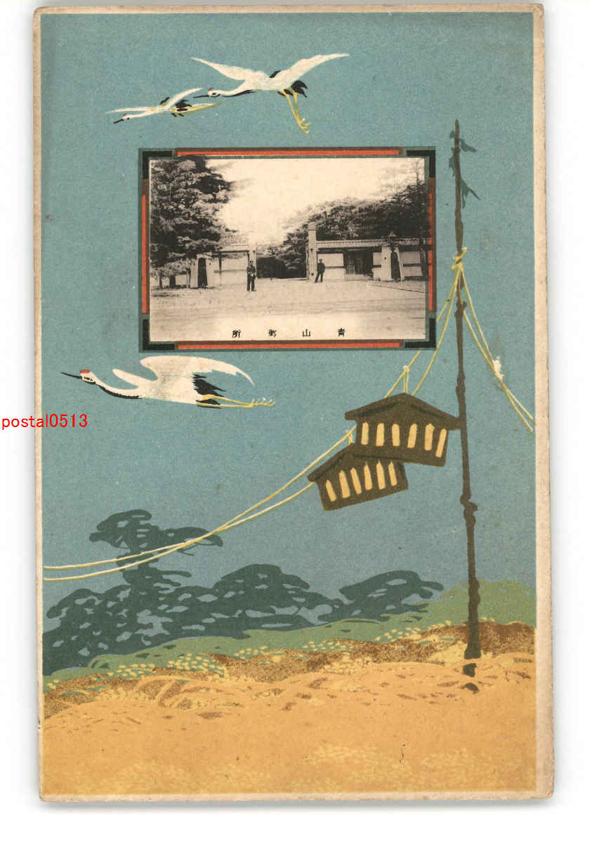青山御所と鶴アート絵葉書 *傷み有り