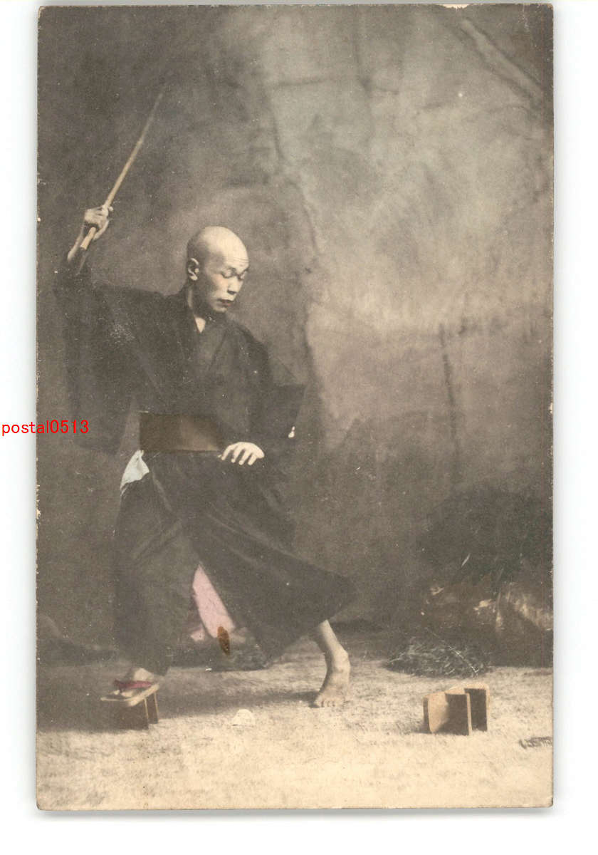 下駄が脱げた盲人 手彩色 *傷み有り