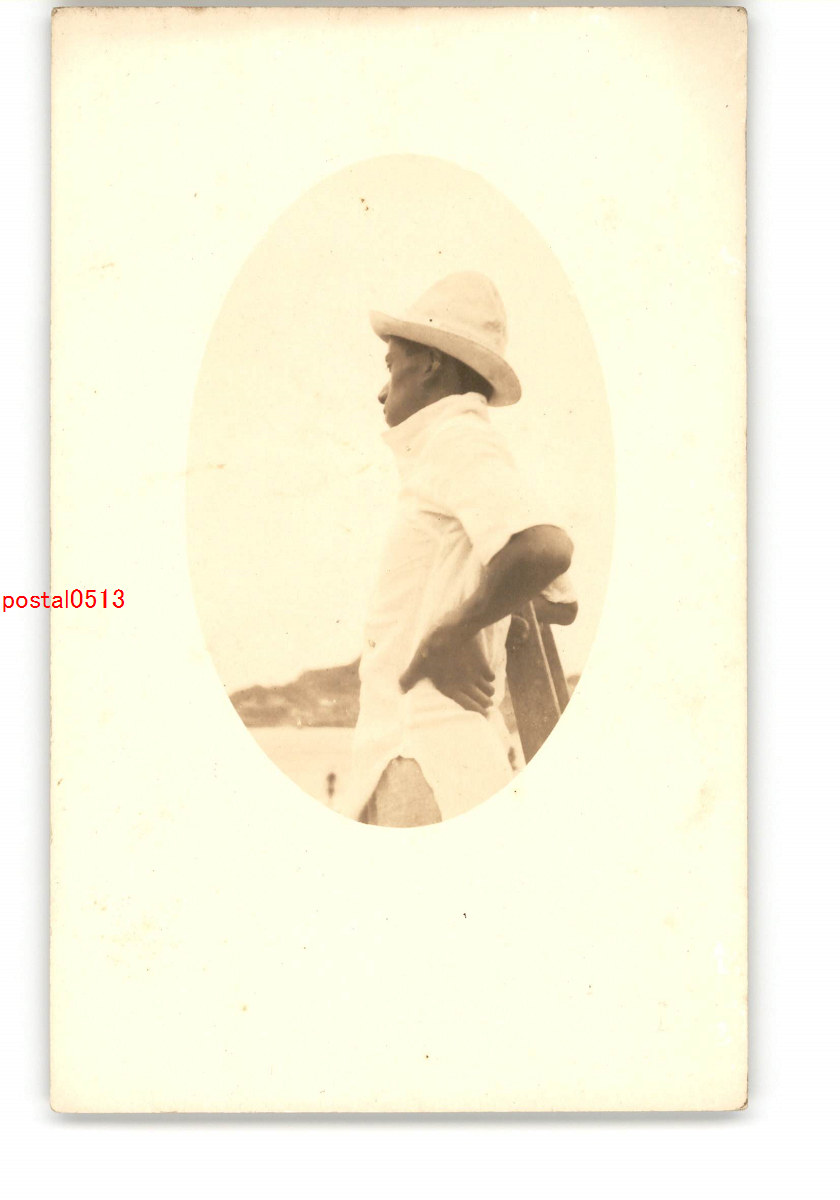 記念撮影絵葉書 海を眺める男性の横顔 *傷み有り