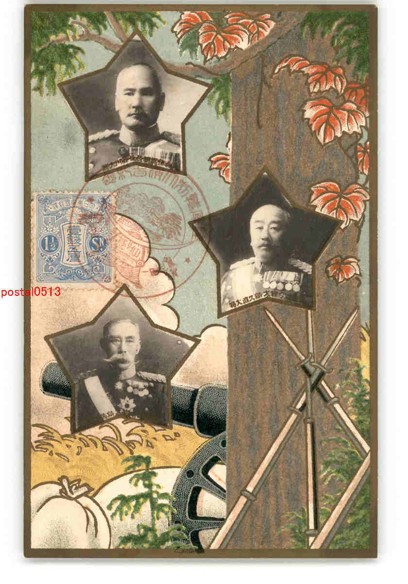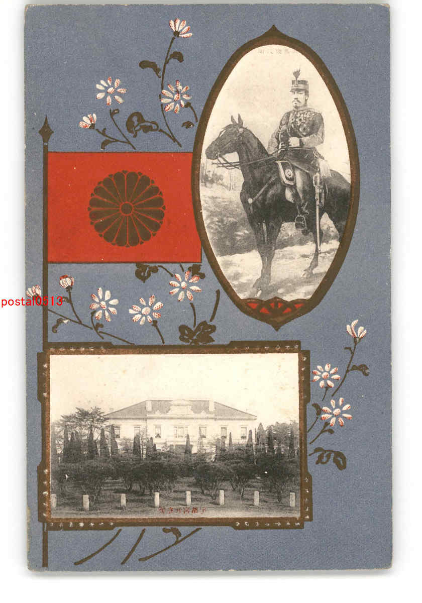宮城 陸軍特別大演習記念 大将肖像とアート絵葉書 *傷み有り