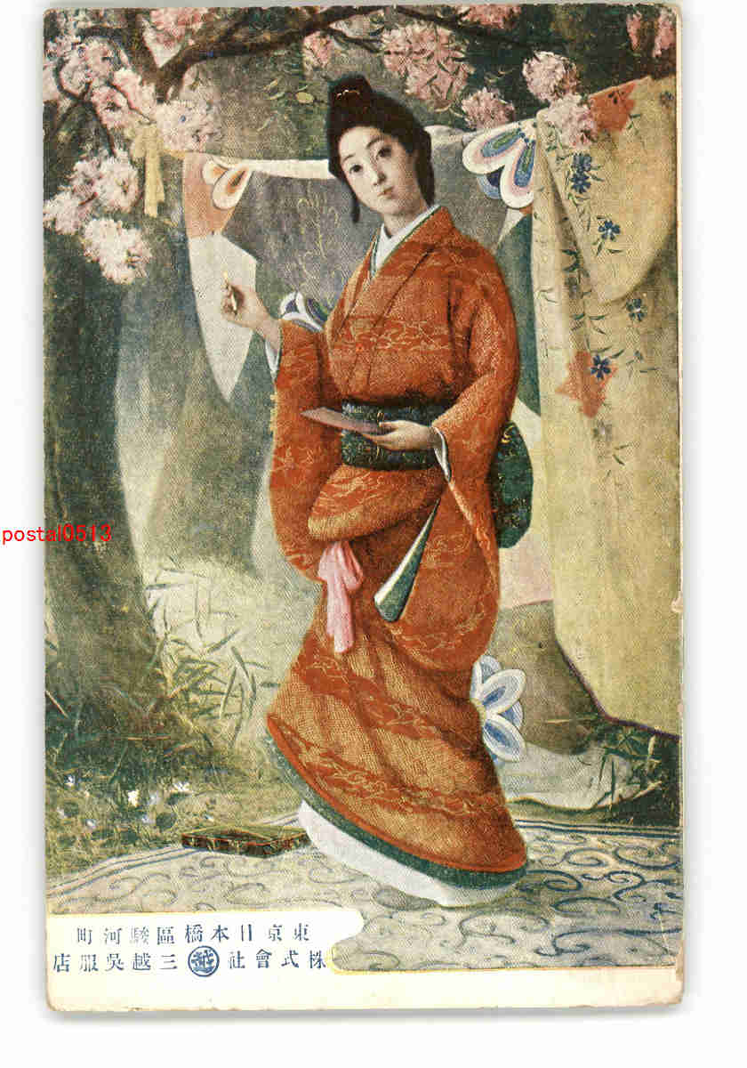 三越呉服店 和服美人アート絵葉書 *傷み有り