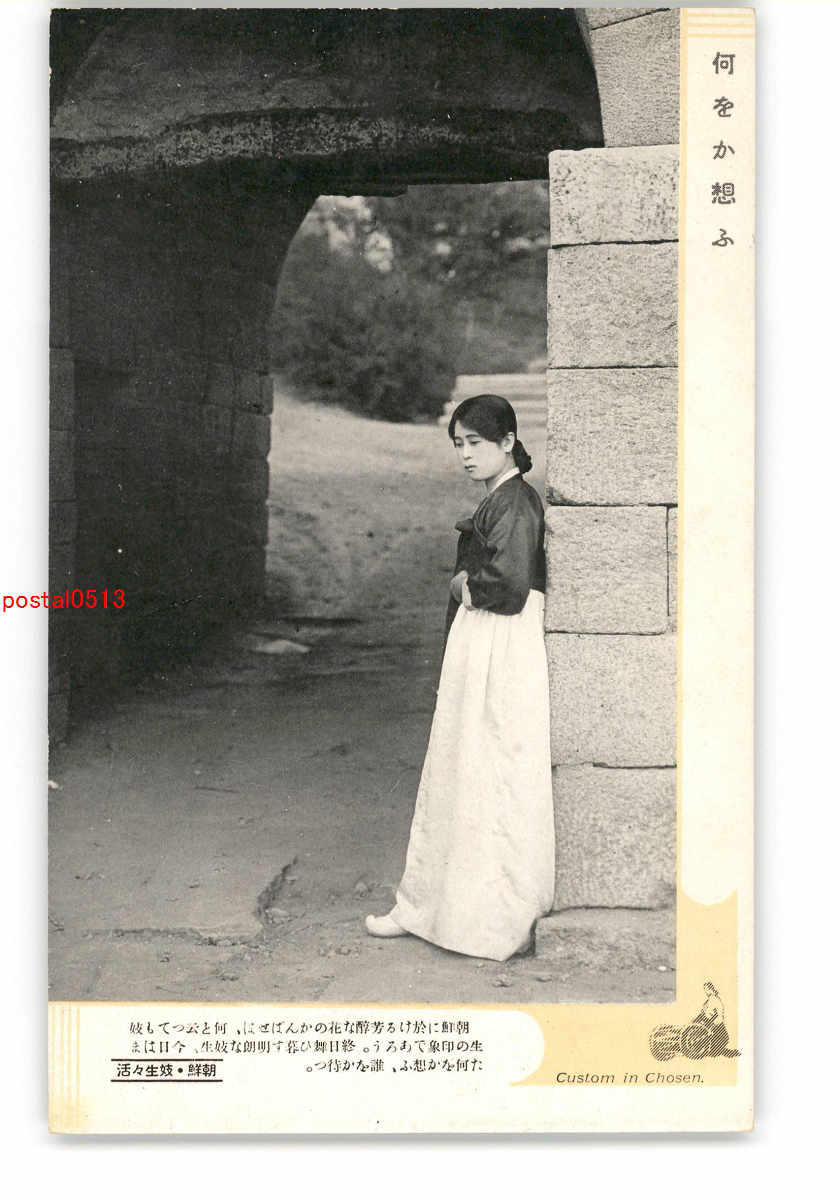 朝鮮 妓生 寄りかかる美人 *傷み有り
