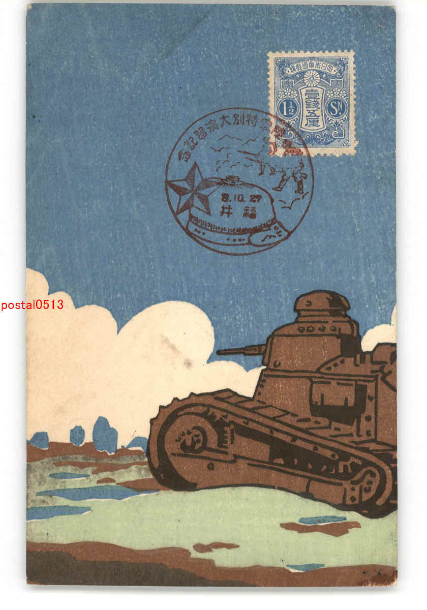 趣味人絵葉書 木版アート 戦車 森永元治 *傷み有り
