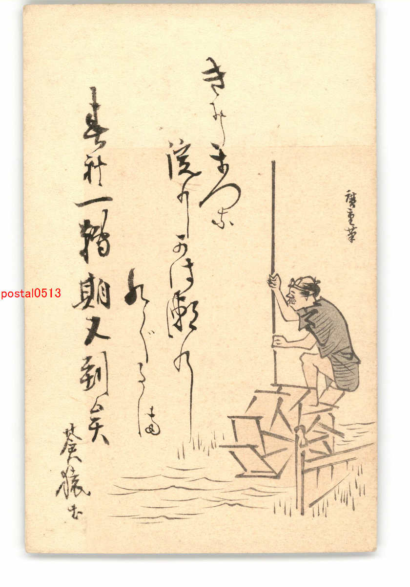 踏車 木版アート絵葉書 *傷み有り