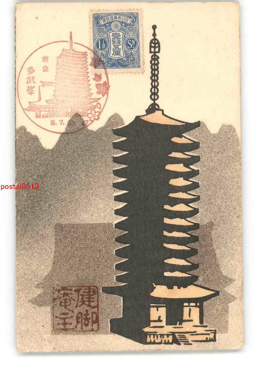 趣味人絵葉書 木版アート 奈良 タ武峯 *傷み有り