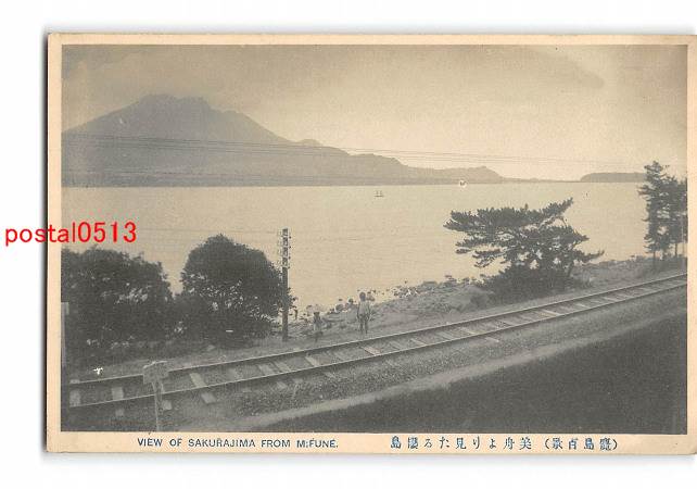 鹿児島 鹿児島百景 美舟より見たる桜島 線路 *剥離有り