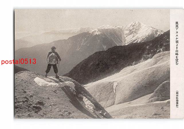 山梨? 岡田紅陽撮影 鳳凰アカヌケ頭より白峰を望む *折れ有り