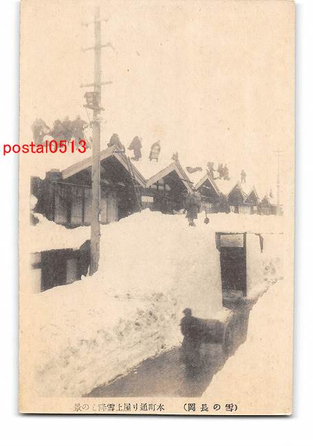 新潟 雪の長岡 本町通り屋上雪降しの景