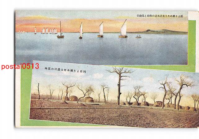 満州 船より眺めたる太沽水道の漁舟と北砲台 列車より眺めたる農村の墓地