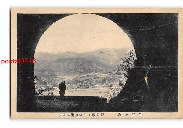 静岡 伊豆熱海 観魚洞より温泉場を望む *折れ有り