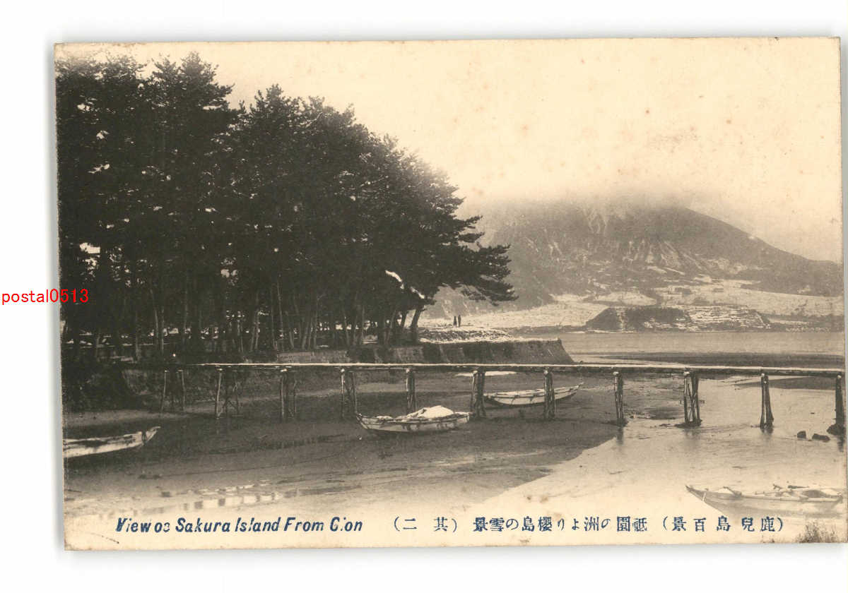 鹿児島 鹿児島百景 祇園の洲より桜島の雪景 その2 *傷み有り