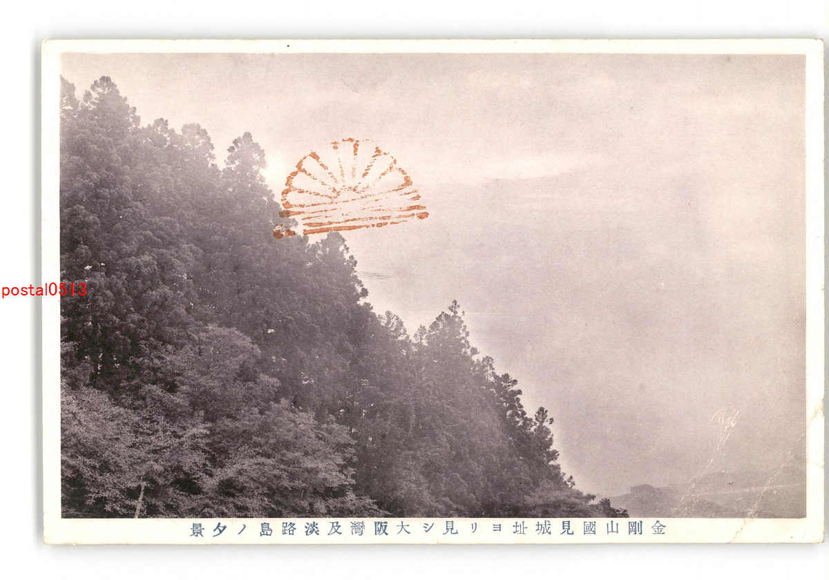 大阪 金剛山国見城址より見し大阪湾及淡路島の夕景 *折れ有り *傷み有り