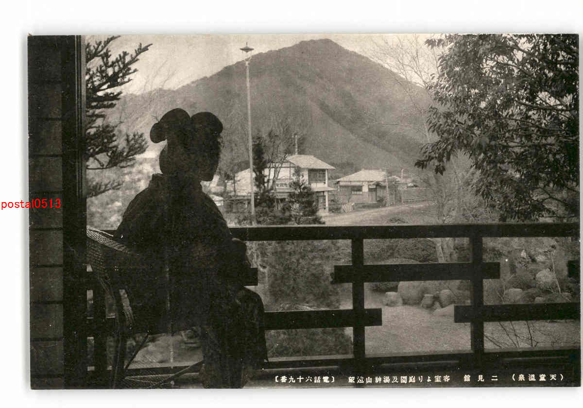 山形 天童温泉 二見館 客室より庭園及湯神山遠望 *傷み有り