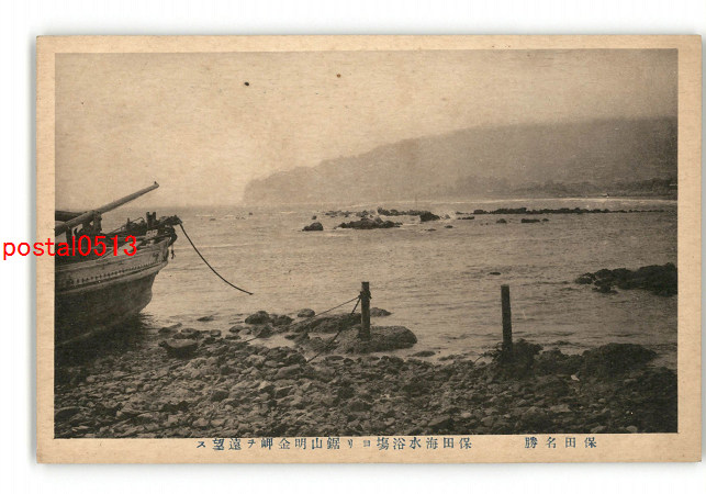 千葉 保田名勝 保田海水浴場より鋸山明金岬を遠望す *傷み有り