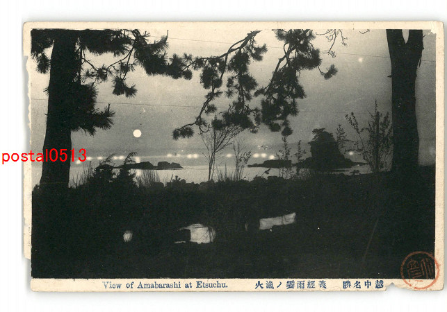 富山 越中名勝 義経雨霽の漁火 *傷み有り