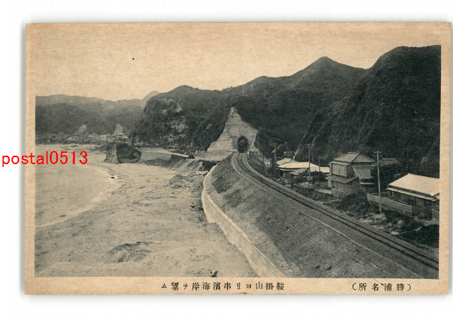 千葉 勝浦名所 鞍掛山より串浜海岸を望む *傷み有り