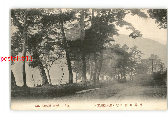 京都 煙霧中嵐山道 渡月橋遠望 *傷み有り