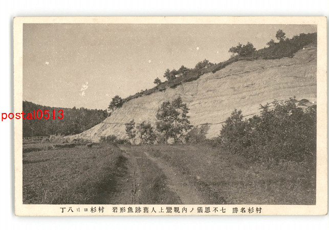 新潟 村杉名勝 七不思議の内親鸞上人旧跡魚形岩 村杉より八丁 *傷み有り