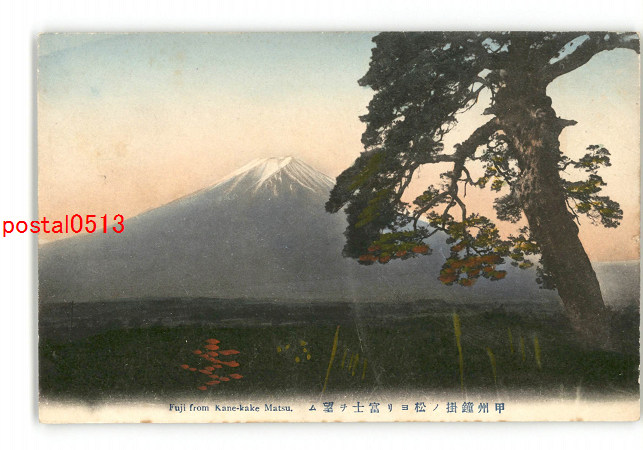 山梨 手彩色 甲州鐘掛の松より富士を望む *傷み有り