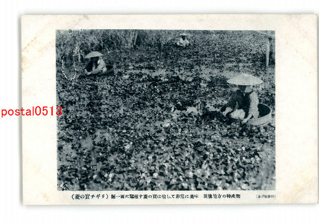 新潟? 菱の実ちぎり 堀一面に繁殖す菱の実は喰して非常に美味 越後地方の特産物 *傷み有り