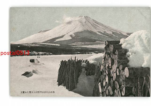 山梨 雪の山中湖岸平野村より見たる富士 *傷み有り