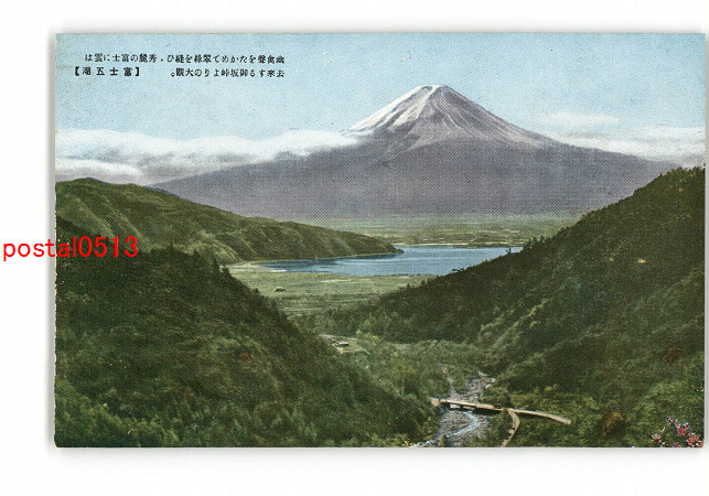 富士山絵葉書 山中村より頂上遠望 *傷み有り