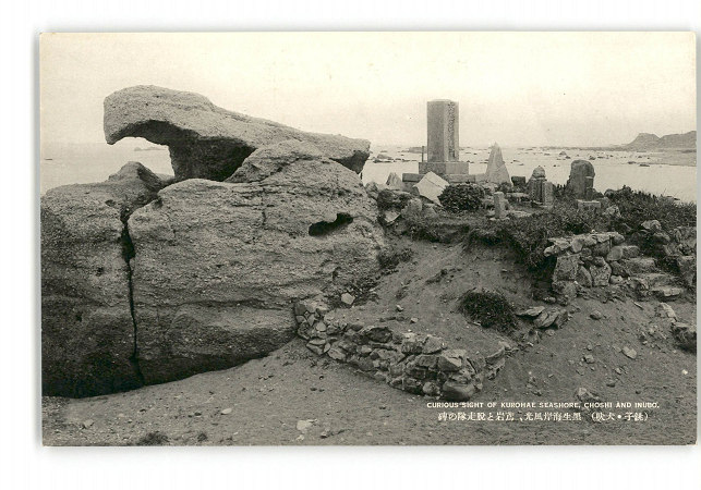千葉 銚子 犬吠 黒生海岸風光 鳶岩と脱走隊の碑 *傷み有り
