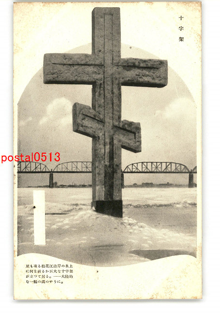 満州 松花江沿岸の氷上の十字架 *傷み有り