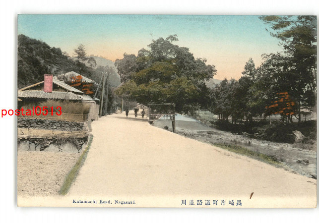 長崎 手彩色 片町道路並川 *傷み有り