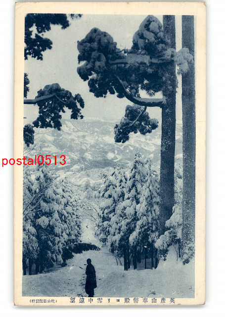 福岡 英彦山奉幣殿より雪中遠望 *傷み有り