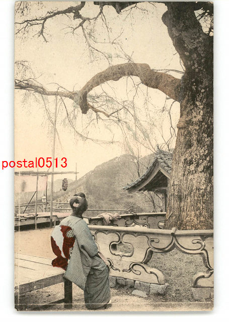 木を眺める女性 手彩色 *傷み有り