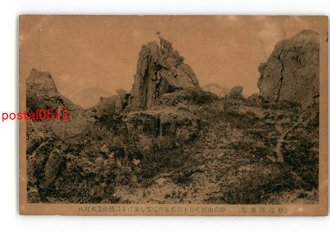 新潟 妙高温泉場 妙高山頂の日本岩背後の残雪を頂けるは焼山及火打山 *傷み有り