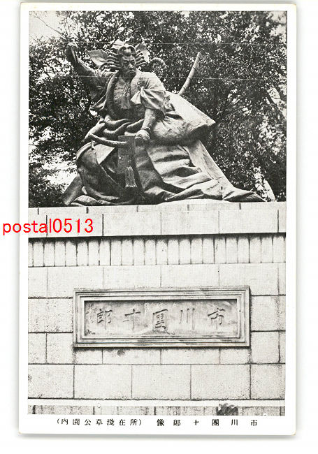 東京 市川団十郎像 所在浅草公園内 *傷み有り