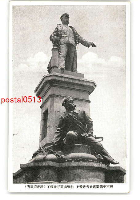 東京 海軍中佐広瀬武夫氏像上 杉野兵曹長氏像下 所在須田町 *傷み有り